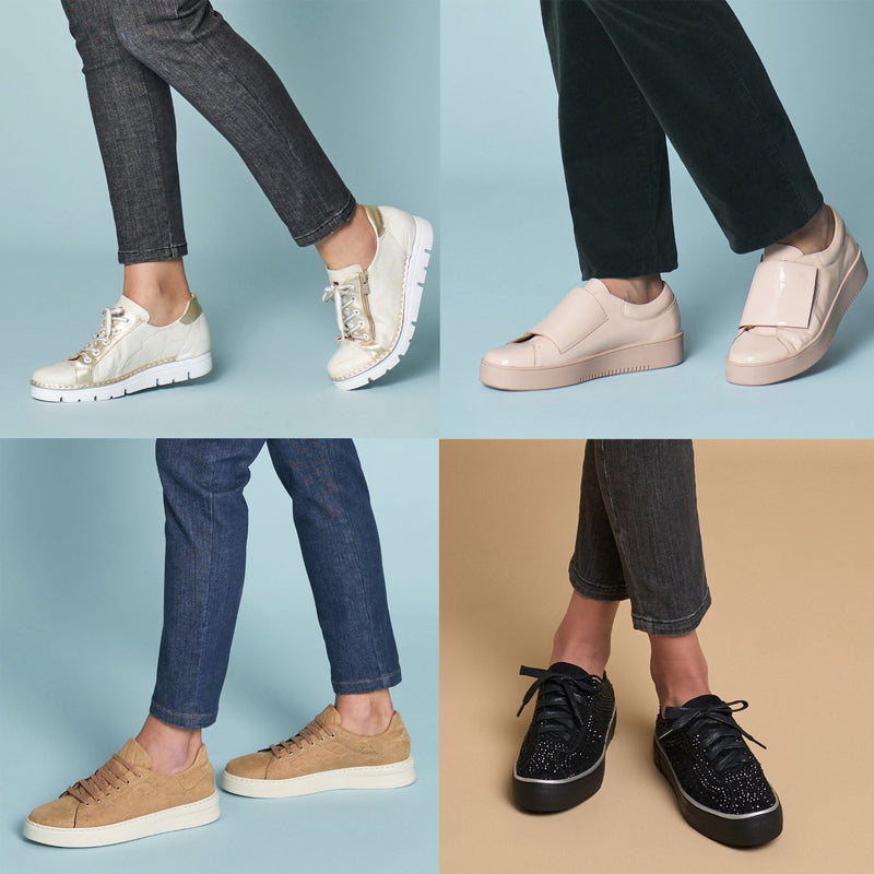 Products pictured from left to right, top to bottom: Camilla Champagne Sneaker; Elyse Patent Sneaker; Belle Rose Sneaker; Marla Black Sneaker
