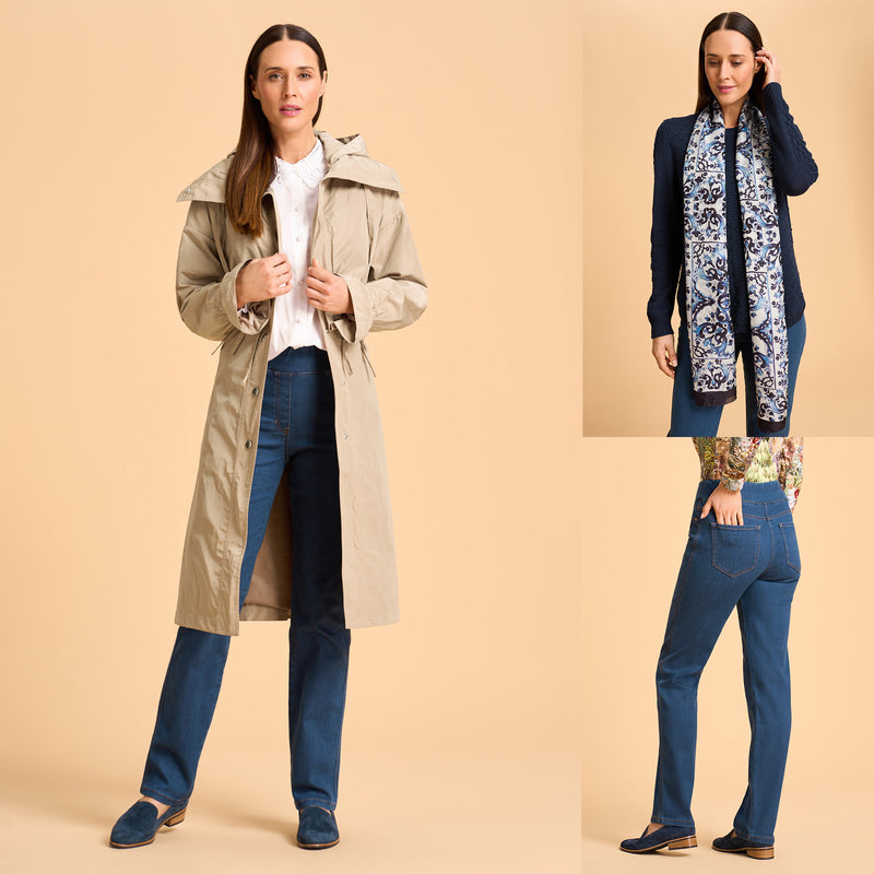 Ooh, la la! Our Bengajean® Cashmere Feel is now available in 2 seasonal shades, Stone Wash Denim and Black. This jean features a lightweight, cashmere-feel lining that will keep you warm all throughout the cooler months. In a straight leg style, this jean pairs well with our casual loafer. Or even better, dress it up with a jumper and Fleur De Lis Silk Scarf. Our striking, two-tone Fleur de Lis Silk Scarf has a heavenly soft hand feel. Crafted from 100% silk with a tile-inspired Fleur De Lis design and a Navy border, this scarf will add a little joie de vivre to your accessory collection.  By the way, by purchasing our Bengajean® - Cashmere Feel, you are supporting Blue Illusion’s investment in Better Cotton’s mission to create a more sustainable future of fashion!