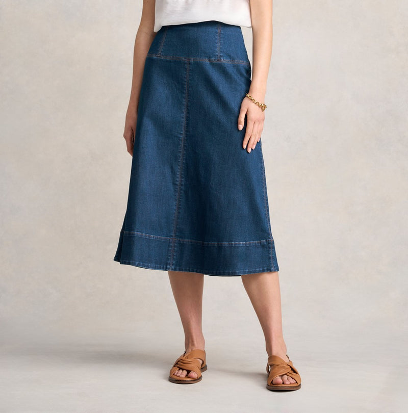 A denim skirt is one of our préfère ways to switch up the classic French girl look. Summer in Paris this year was full of mid to maxi-length jean skirts, and we fell in love. It’s so easy to style this elegant and understated basic with our Texture Twist Blouse, flats, and a chic clutch, et voilà!