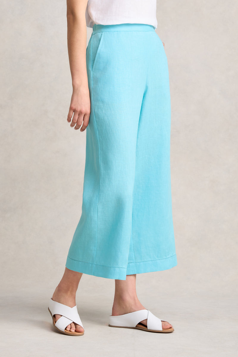 Featuring the wide leg silhouette we know you love, comes our 7/8th Linen Wide Leg Pant in Blue Lake.