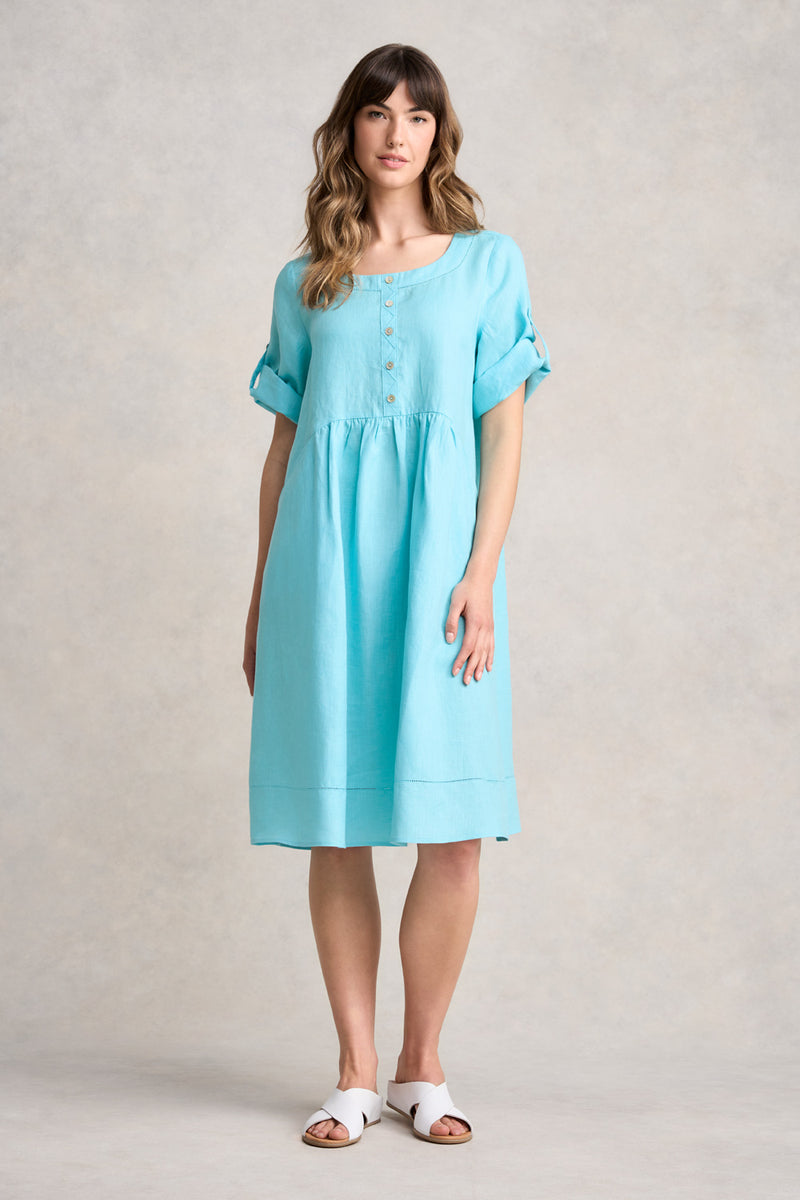 In whimsical Blue Lake comes our Button Detail Linen Dress. A much-loved Blue Illusion style, this dress is crafted from 100% French linen making it comfortable, lightweight and breathable.