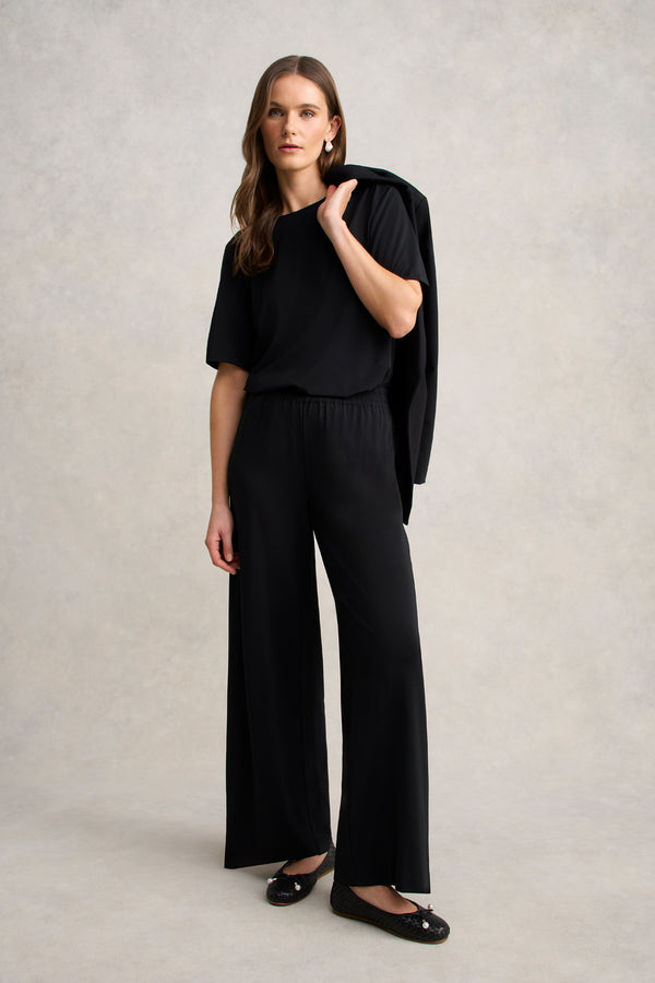 Effortlessly sleek, these best-selling palazzos are reimagined with a clean, modern look. The high twist fabric offers soft structure and all-day comfort, while the full-length, wide leg cut flatters every step. Perfect for workdays, weekends, and everywhere in between.