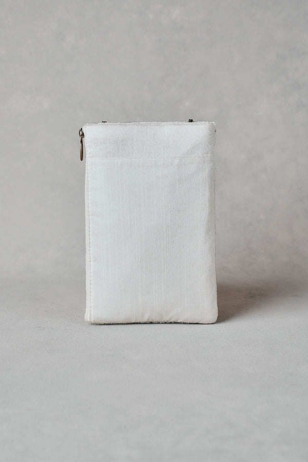 Chic and striking, this black and white mini clutch is intricately beaded in a bold leaf motif. With a compact shape, brass chain strap and magnetic button closure, it’s the perfect finishing touch to any outfit.