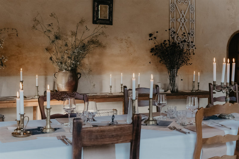 Suzie’s château experiences are also famous for their fabulous table settings. Whether at the dining table in the chapel, the château, or overlooking the garden, freshly picked flowers or other natural elements will always feature in the tablescapes created by Sophie.