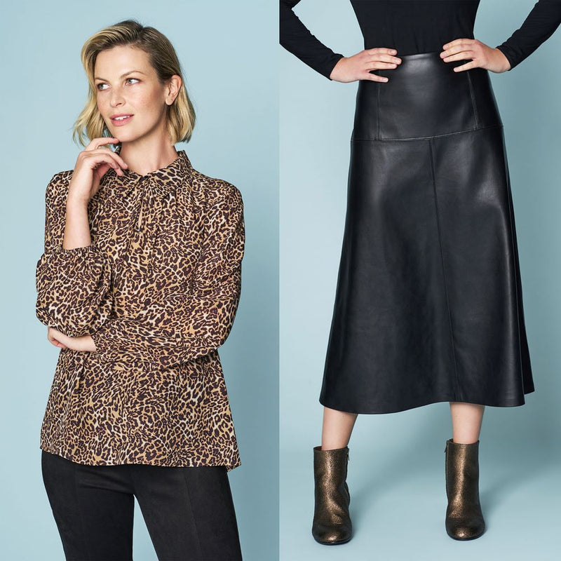 This stylish, A-line skirt is made from an incredibly soft faux leather. With a special coating to emulate the leather look as well as panelled details for an authentic finish, the skirt also features a deep basque at the waist to flatter the figure and is fully lined. Pair it with our Twist Neck Flounce Top in Black for instant opulence.