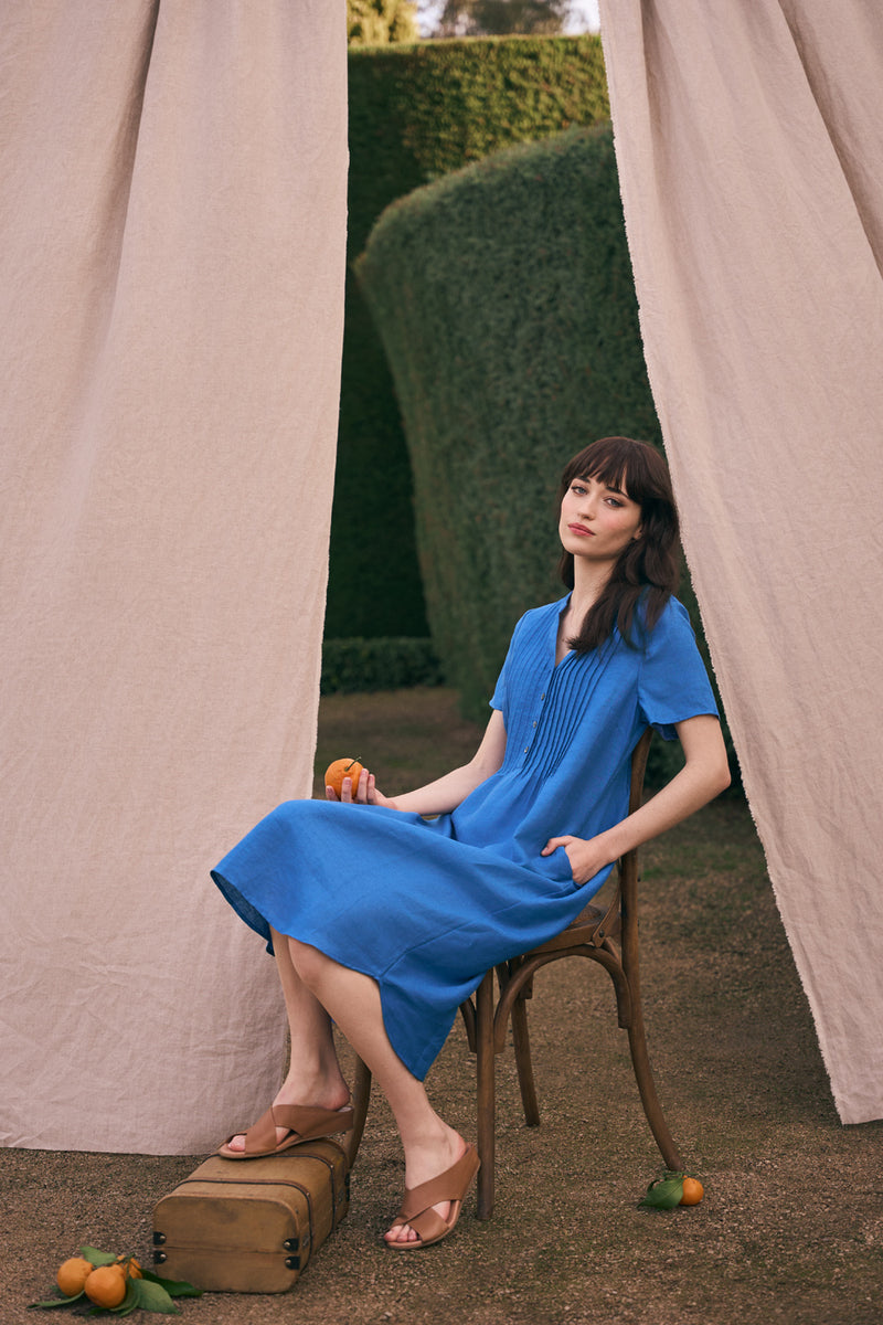 Create the look: Pair the scoop neck or the pleat front linen dress with the Harli cross sandals, et voilà!