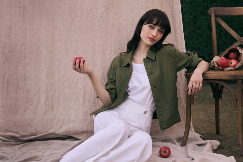timeless linen jacket. Pair with the Harli cross strap sandals.
