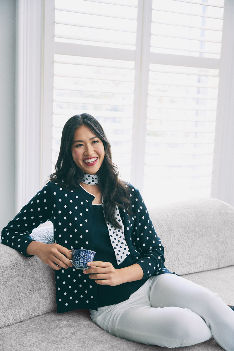 Cardigans are trés chic and ideal for transitional weather. For a sophisticated touch, pair a top and cardigan with white denim jeans, a silk scarf, and ballet flats. This is an elegant and versatile look that you can wear for nearly any occasion and feel beautiful and comfortable.