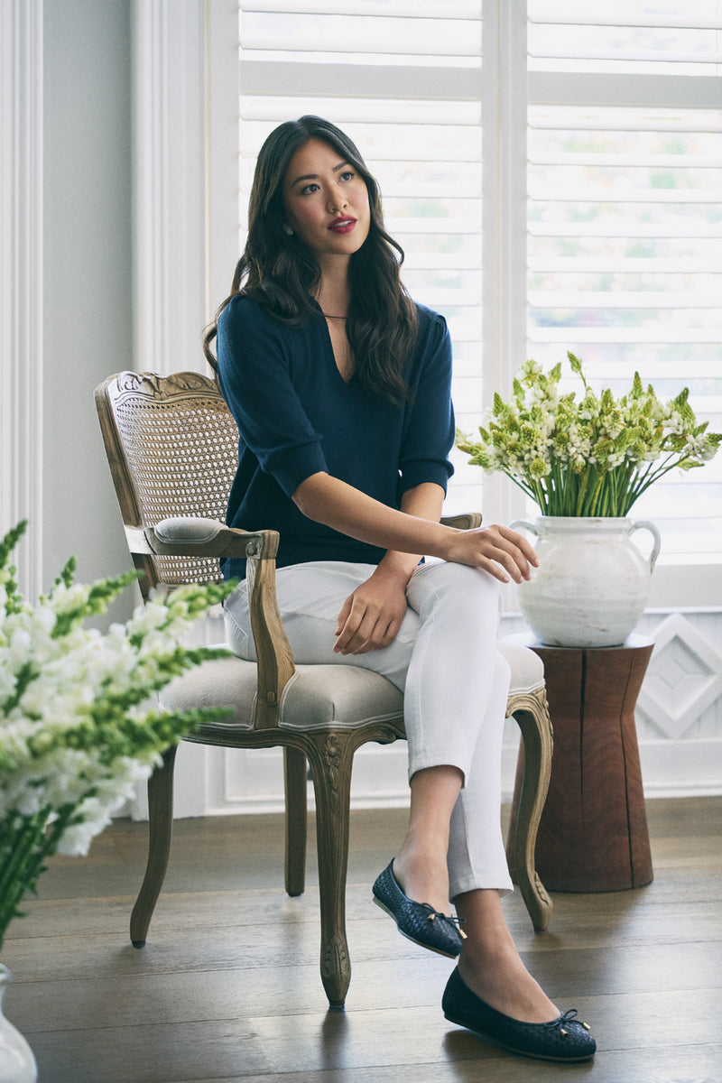 fabrics are Australian Merino wool and stretch denim. Be sure to match your knit to your ballet flats or accessories for true Parisian style.