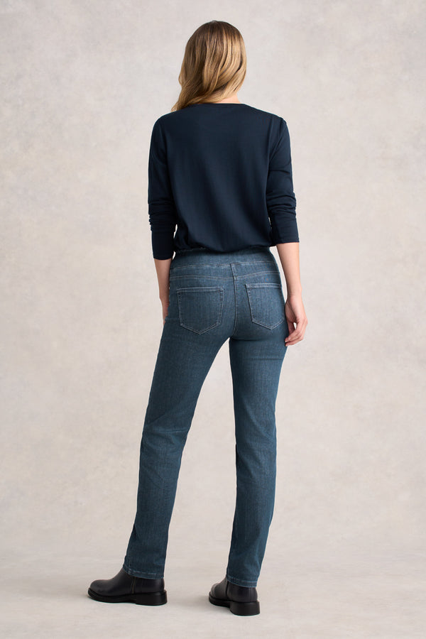 Our new Bengajean® Straight Leg is cut from stretch cotton and features an easy pull-on waistband to maximise comfort as well as style. This full-length pant features the Indigo Grey Wash colour of our Éclat Rouge collection and is a great option for everyday style, ready to be dressed up or down.