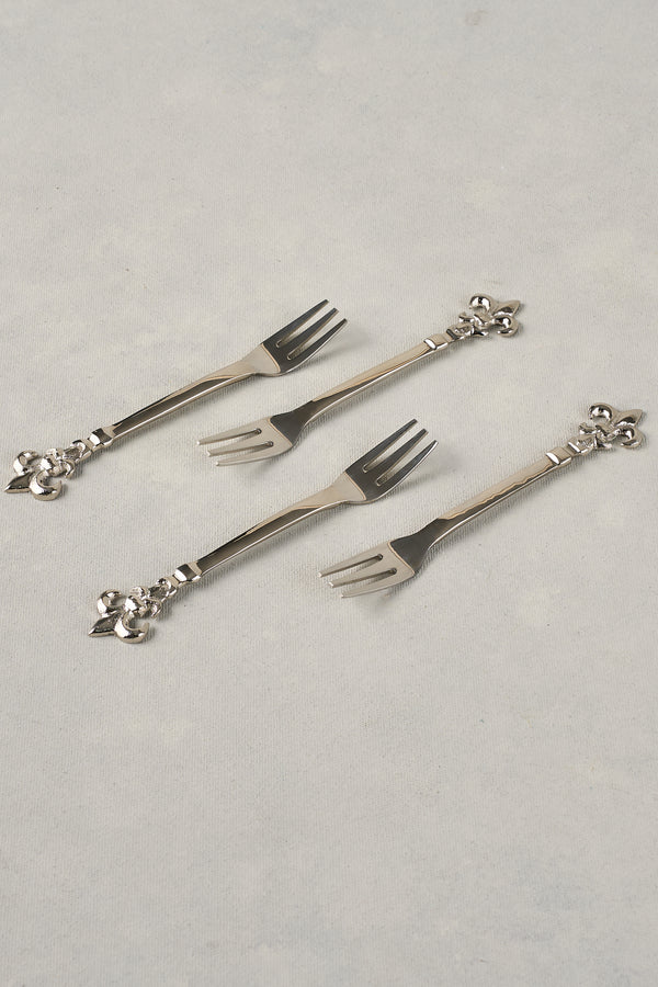 Add vintage charm to afternoon tea with this set of four silver-toned cake forks. With fleur-de-lys handles and classic styling, they elevate every occasion — from quiet treats to petit fêtes with friends.