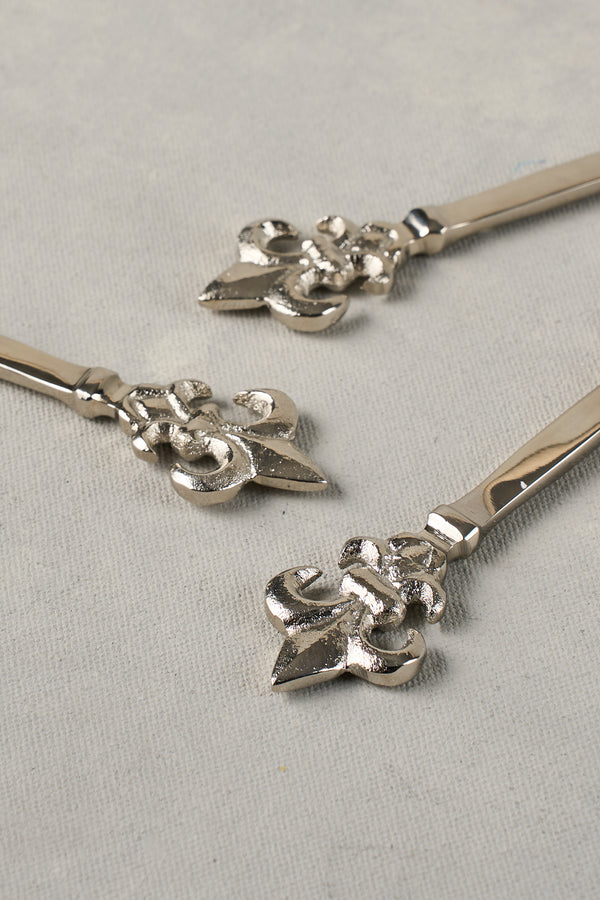 Elegant entertaining begins with the details. This set of two silver-toned cheese knives features classic fleur-de-lys handles for a refined finish. Beautifully boxed, they make a thoughtful gift — or a timeless addition to your own table.