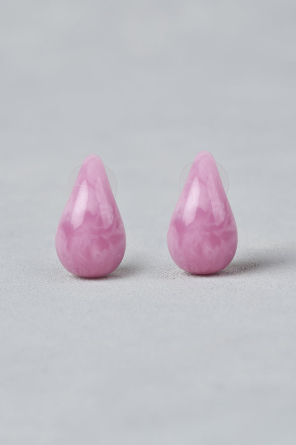 Bold in shape, soft in tone — these chunky pink studs make a confident statement with their curved teardrop design. Lightweight and luminous, they bring a playful edge to clean tailoring or add a touch of flair to everyday neutrals.